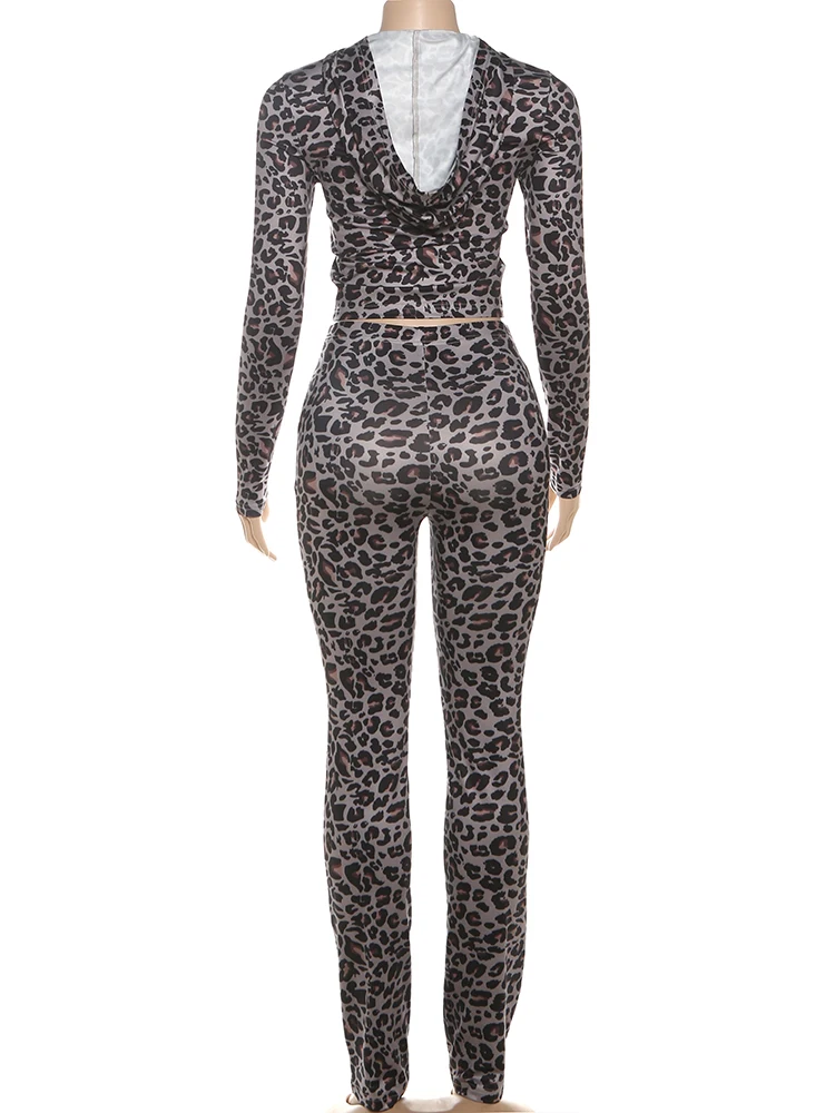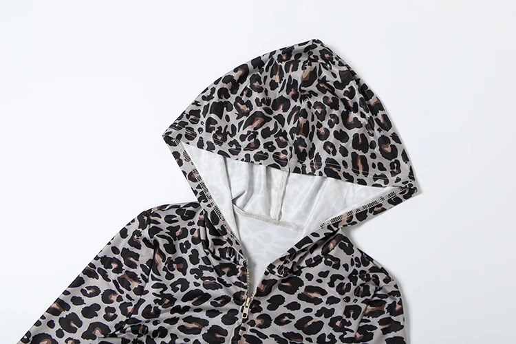 Cutenew Zip Leopard Set Women Tracksuit Hooded Jacket+Leggings Matching