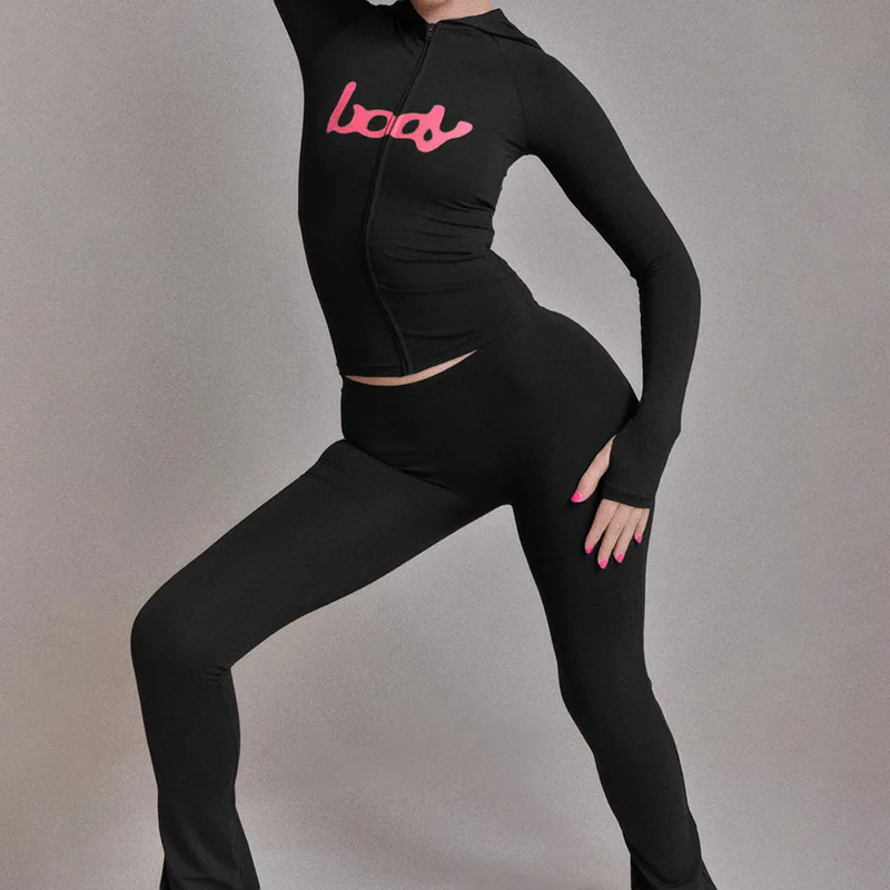 Letter Printed Women 2 Piece Set Leopard Zipper Fly Sweatshirt Skinny Pants Matching Set 2025 Autumn Winter Sporty Tracksuits