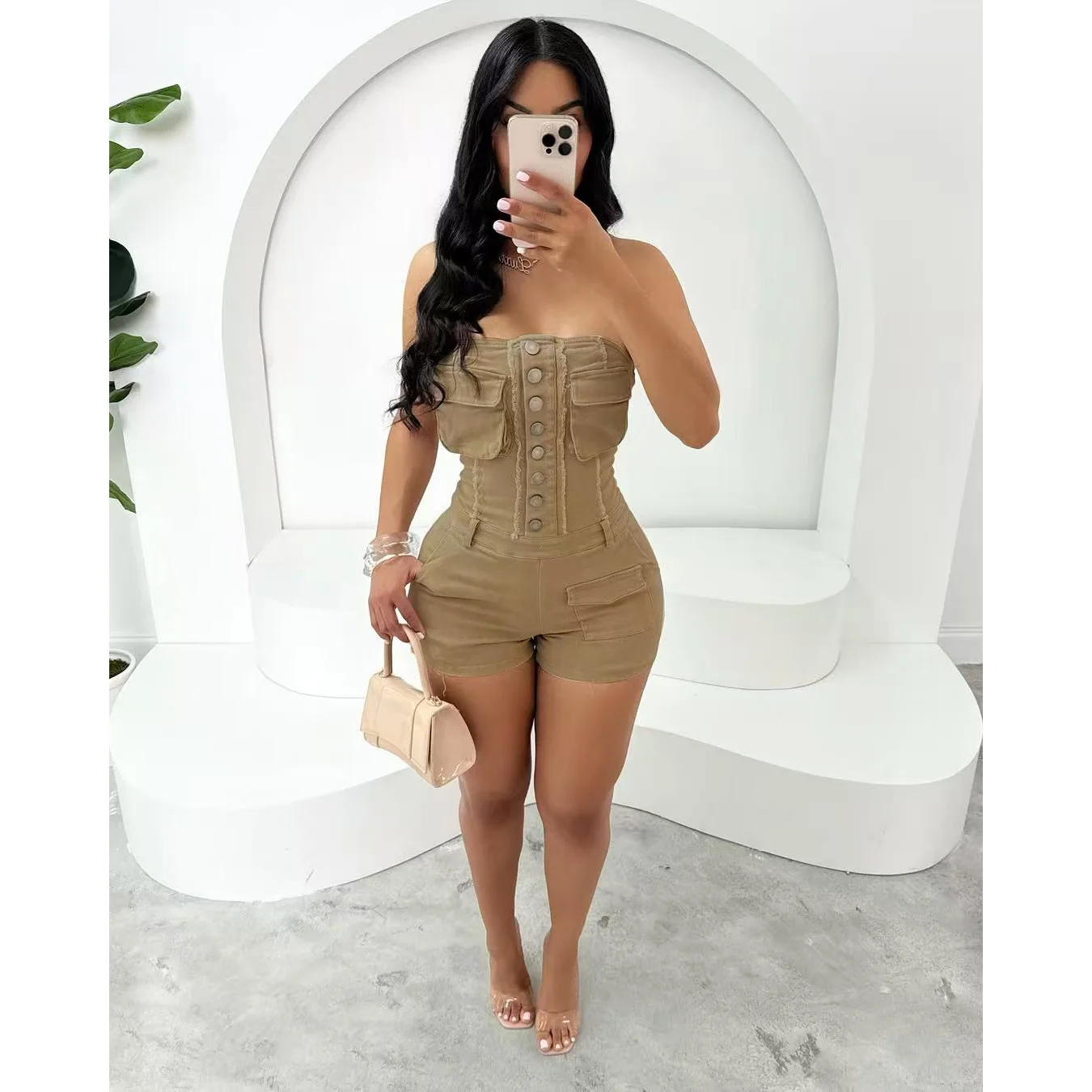 Pink Pockets Sleeveless Jumpsuits 2025 Summer Clothes Women